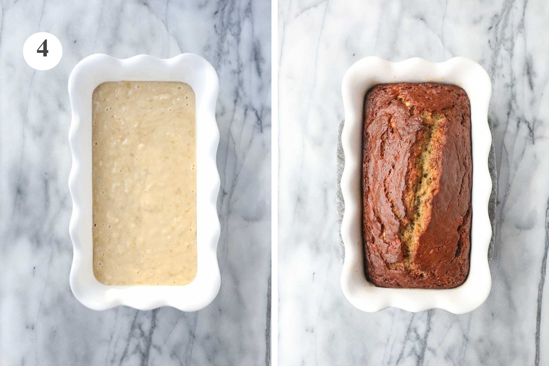 - Loaf Pan Type: In this recipe, I use a ceramic loaf pan. If you are using a metal loaf pan, you may need to reduce the baking time by 5 minutes. If you are using a glass loaf pan, you may need to add 5 minutes.